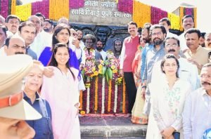 महात्मा ज्योतिराव फुले आणि क्रांतीज्योती सावित्रीबाई फुले यांनी दाखवलेल्या सन्मार्गावर चालून शेवटच्या घटकापर्यंत विकास पोहोचविण्याचे काम करू, असे सांगून मुख्यमंत्री देवेंद्र फडणवीस म्हणाले, क्रांतीज्योती सावित्रीबाई फुले यांचे जिवंत स्मारक म्हणजे सक्षम महिला होय. त्यांचा विचार समाजात तळागाळापर्यंत रुजवून स्वयंपूर्ण व स्वतःच्या पायावर सक्षमपणे उभारणाऱ्या महिला घडविण्याचे कार्य शासन करेल. महिलांना 33 टक्के आरक्षण मिळाल्याने पुढील काळात निश्चितपणे महिलाराज येईल. केंद्र शासनाच्या लखपतीदीदींसारख्या योजनेच्या माध्यमातून येणाऱ्या दोन तीन वर्षात 50 लाख महिलांना लखपती दीदी घडविण्याचे कार्य शासनाने हाती घेतले आहे.